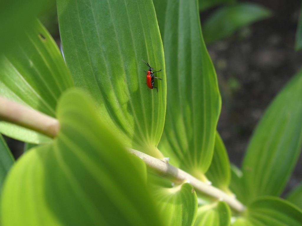 Criocère du lys (coléoptère rouge, beau comme un bijou et pour qui les lys sont un régal !)