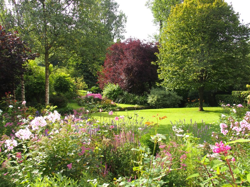 J‘ai hésité à vous parler du jardin en août tant le temps – des côtes de la Manche aux collines du Boulonnais – a été ATROCE. Et encore, le mot est faible. Pluies quasi quotidiennes, orages, brume, bruine … Tout ce qui se fait de plus déplaisant et déprimant dans le domaine météorologique, tout ce que je déteste (contrairement à Monsieur Bruxelles qui n’est jamais si heureux que sous une pluie glacée…) fût notre lot quasi quotidien. Seulement trois ou quatre jours de très beau temps en un mois ! Nous avons donc tenté d’en profiter au maximum, tels des prisonniers se retrouvant dehors et s’étonnant que le ciel puisse encore être bleu. Pour moi qui n’aime rien tant que le grand soleil, quelle punition ! Les quelques photos que je partage ici ont été prises, pour la plupart, lors des rares – et bénies ! – éclaircies. En juillet, je vous conseillais de chausser vos bottes pour la visite du jardin, et bien, gardez les pour le tour du jardin en août ! Bon, les …