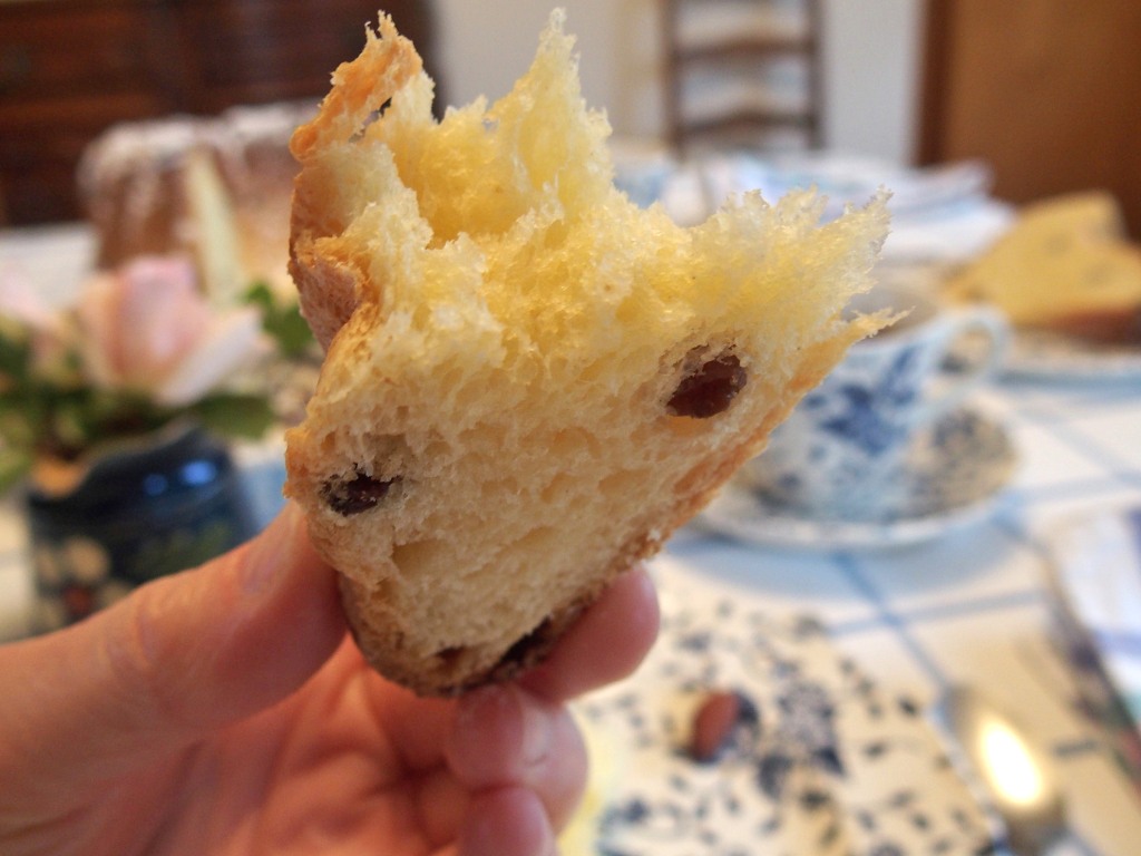 Durant la nuit, alors qu’il reposait gentiment sur sa grille à pâtisserie, mon Kougelhopf a parfumé toute la cuisine. Un parfum acidulé qui nous rappelle, mieux que les photos de famille, les petits déjeuners de nos vacances en Alsace lorsque j’étais petite. Enfin, je devrais préciser, les petits déjeuners de fête (Pâques, Noël, Nouvel An …) car en Alsace, le Kougelhopf se déguste le dimanche et aux occasions spéciales.