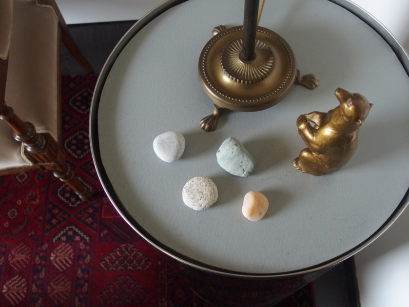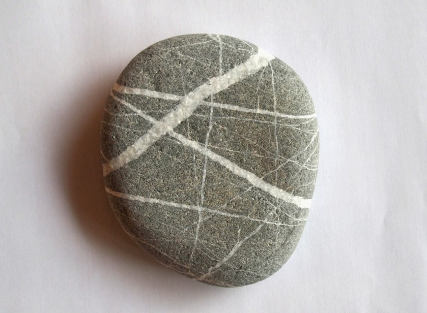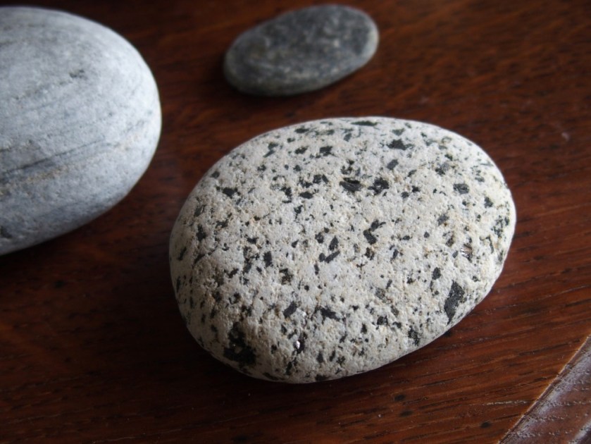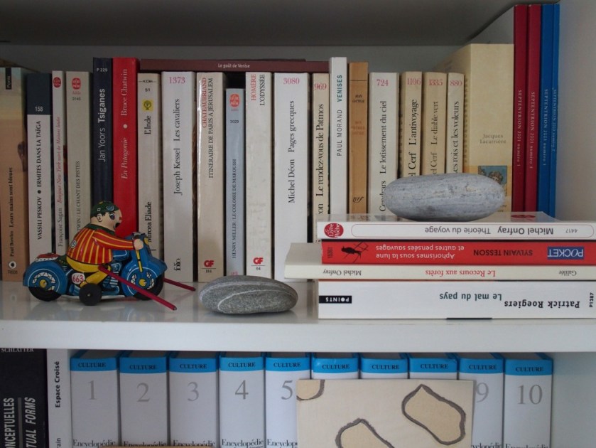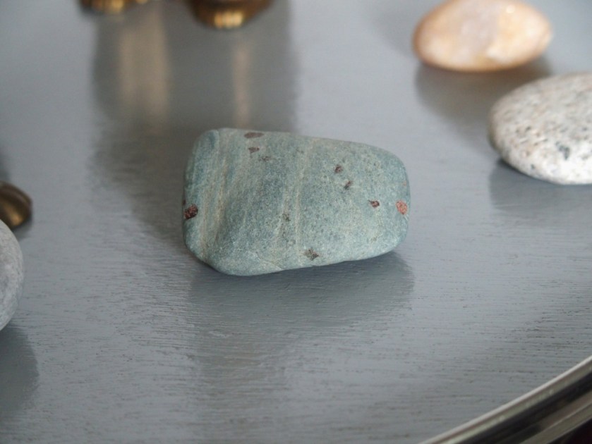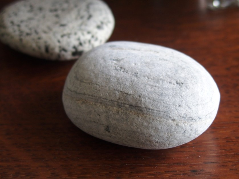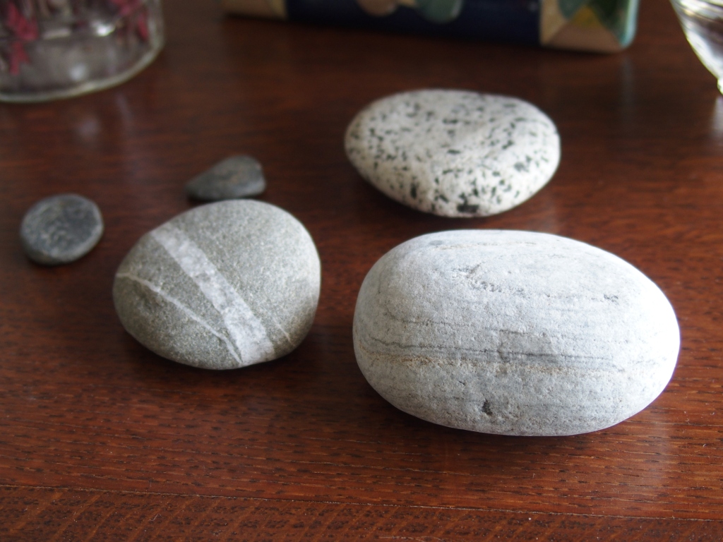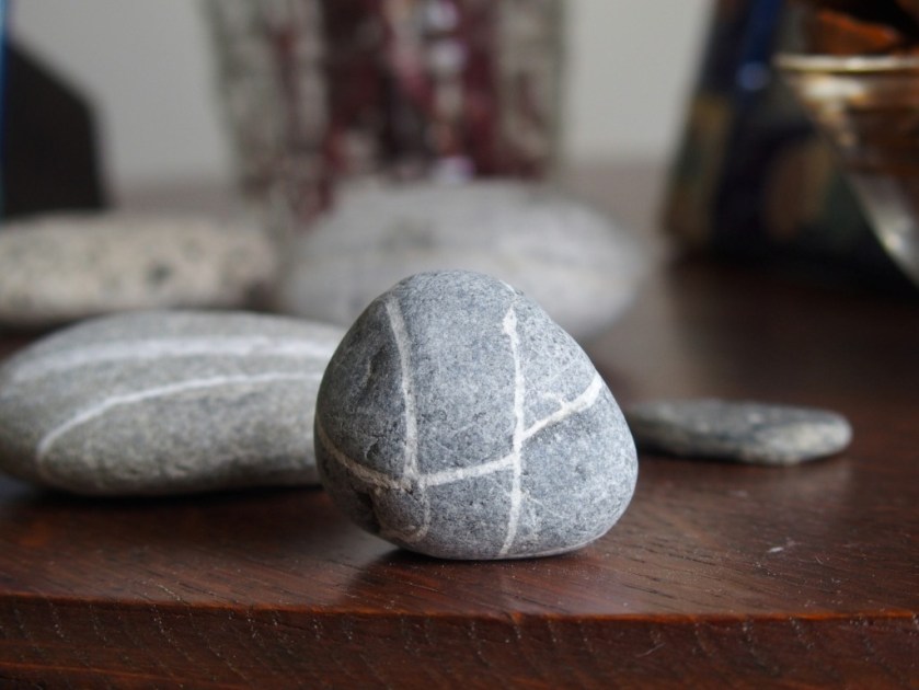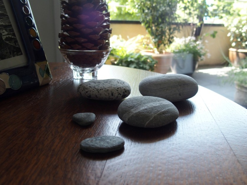 J’aime les cailloux, les pierres, les galets … Chez moi, ils sont posés un peu partout, sur la bibliothèque, ma table de chevet, mon bureau … Ce sont des souvenirs de voyage, de moments heureux, de paysages …