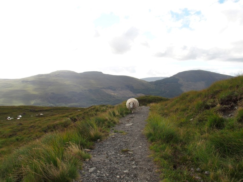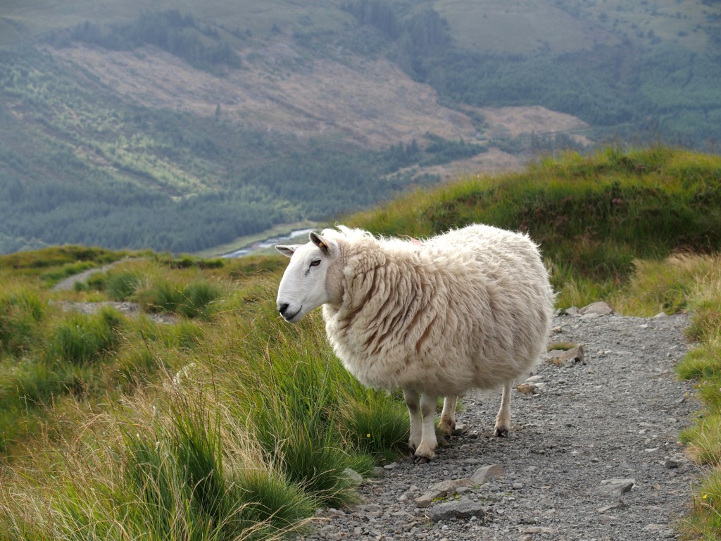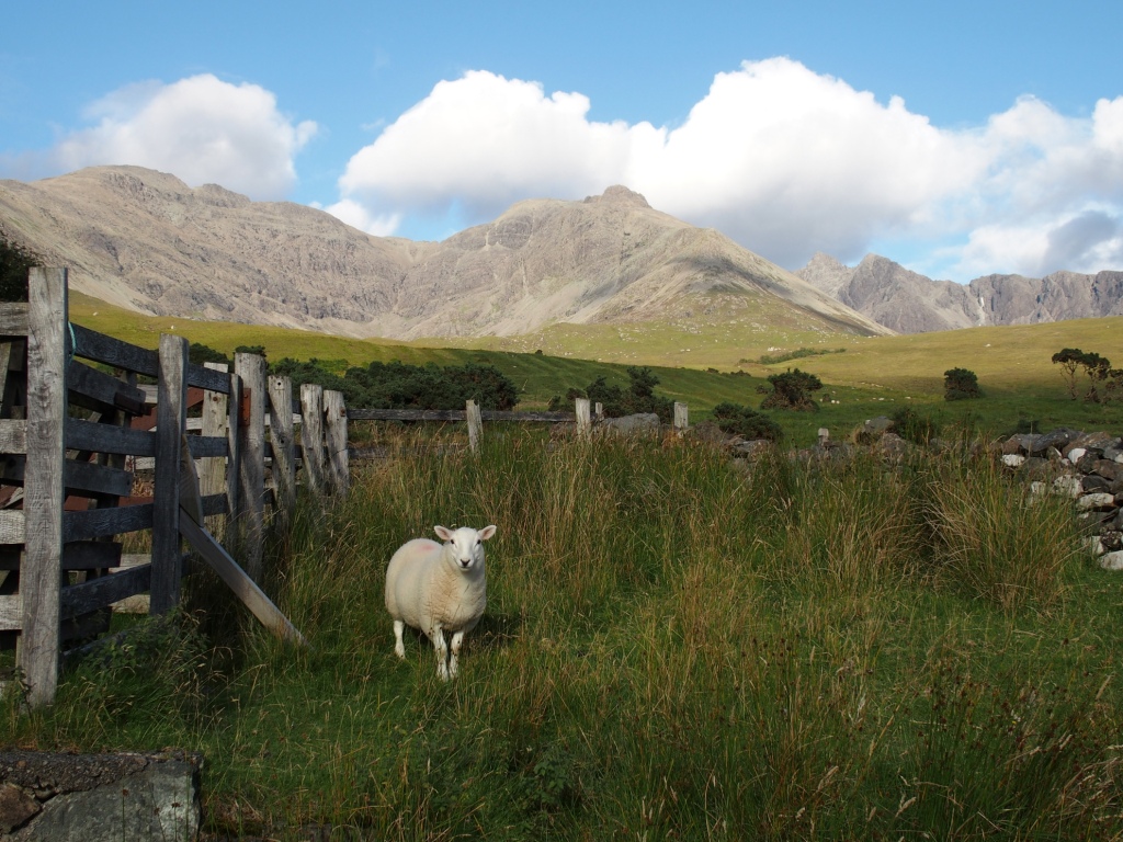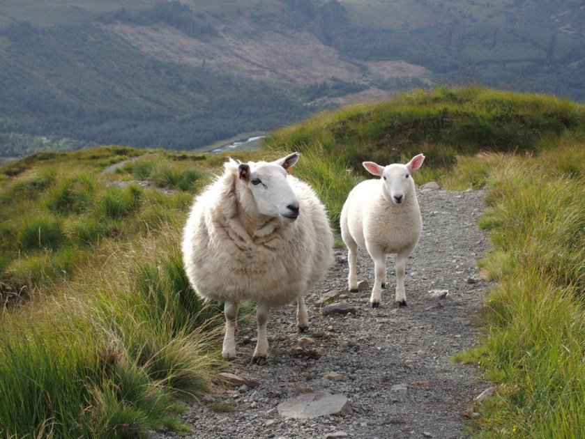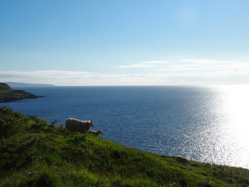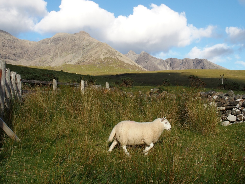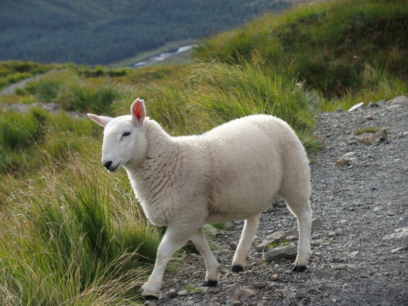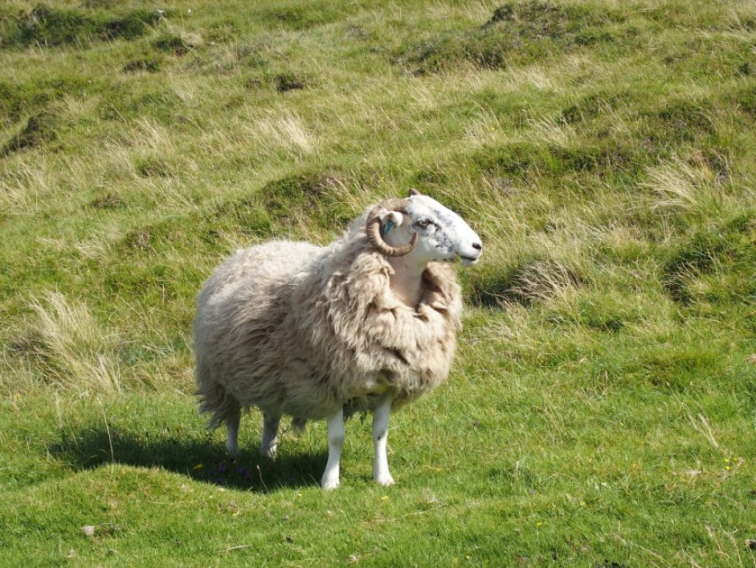 A Skye, les moutons sont libres, se déplacent seuls ou par petits groupes, bondissent sur les routes à voie unique (ces toutes petites routes de la largeur d’une voiture), font la sieste dans les fossés tapissés de fougères, allaitent leurs agneaux sur les « passing place », aménagés à intervalles réguliers afin que les véhicules puissent se croiser), ou avancent tout simplement de la façon la plus nonchalante qui soit, laine bouclée au vent, maitres de la lande et du temps … Ils sont chez eux. L’île est leur domaine.