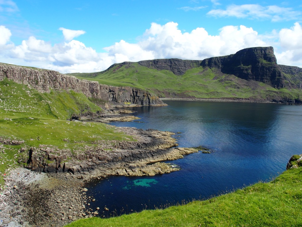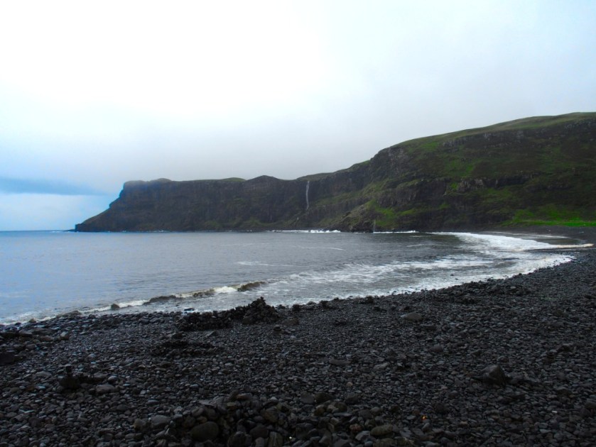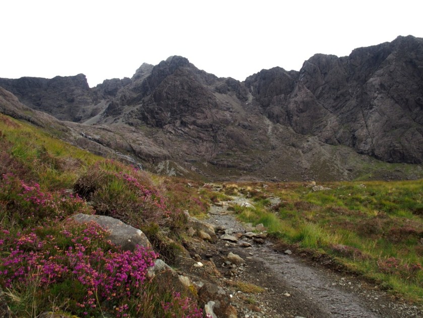 La géomorphologie (science passionnante s’il en est – je regrette parfois d’avoir fait les beaux-arts) explique le paysage. Collision des plaques tectoniques, orogenèse, éruptions volcaniques et chambres magmatiques prémices des montagnes d’aujourd’hui, glaciation, déplacements, métamorphisme et plissement des roches en des temps immémoriaux aux noms de dieux ou de fées … Les plus vieilles roches du monde se trouvent en Ecosse et les volcans et les glaciers façonnèrent Skye ; une île – je n’allais pas tarder à m’en apercevoir – faite pour les dieux et les fées …