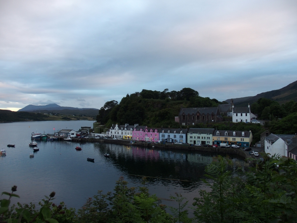 La route du retour à notre cottage passait souvent par Portree, la ville principale au centre de l’île puis par Sligachan où la vue sur les Cuillins au crépuscule me ravissait.