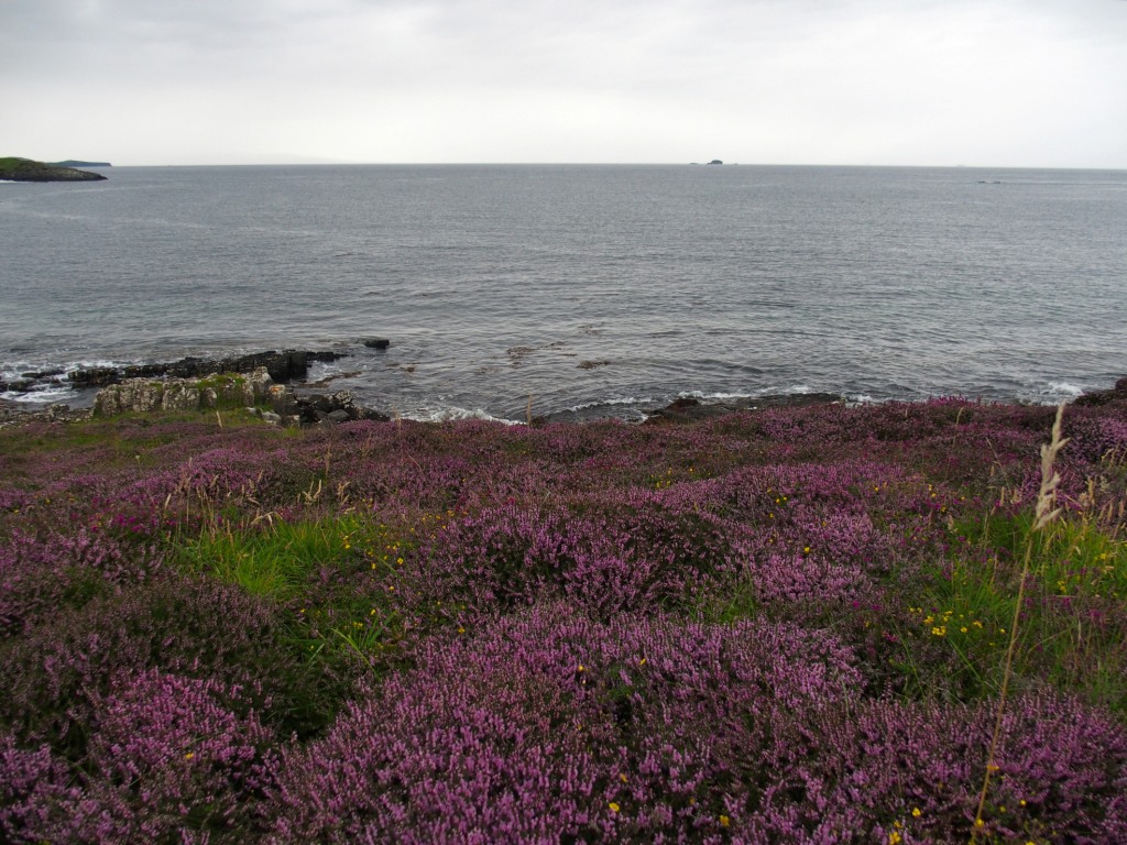 Comme celle longeant le loch Brittle jusqu’à la pointe de Rubha an Dùnain. Première ballade pour nous « mettre en jambes » et nous émerveiller des couleurs de la mer, du ciel, de l’herbe piquetée de fleurs minuscules et des bruyères jusqu’au rivage.