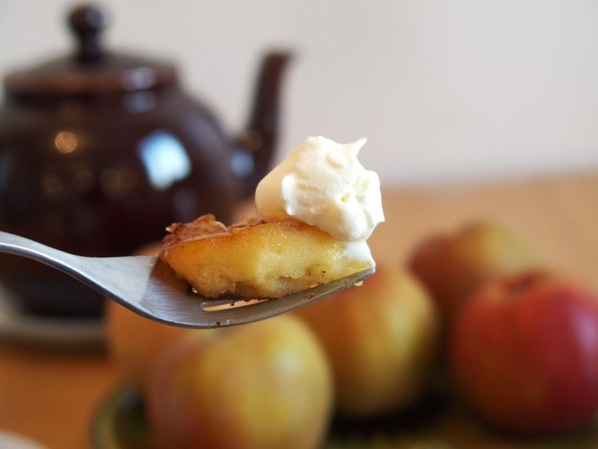 Aujourd’hui le temps est juste morose. Pas de neige, pas d’étoiles glacées dans le ciel lorsque je rentre du travail. Juste du gris légèrement déprimant et un vent humide qui nous fait frissonner. Il faut donc se remonter le moral. Les pommes en l’air sont aussi faites pour ça.