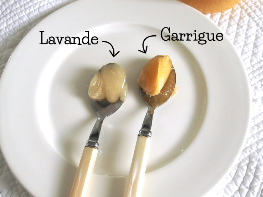 Nous avons passé commande et reçu quelques jours plus tard leurs deux huiles d’olive (la « tradition » et la Verte) ainsi que du miel de lavande et de garrigue. Sans attendre, nous avons gouté l’huile à la petite cuillère et avons été conquis d’emblée. La « tradition » s’avéra fruitée à souhait, ronde, parfumée comme il se doit et la Verte, très verte, agaçante sous la langue, légèrement piquante et d’une vivacité printanière. Quant au miel … un délice ! Celui de lavande d’une finesse aromatique remarquable et celui de garrigue, puissant (comme j’aime), long en bouche (le miel, c’est comme le vin) et plein des parfums de ces paysages que j’adore (secs et caillouteux, truffés de lavande sauvage, de romarin et de thym).