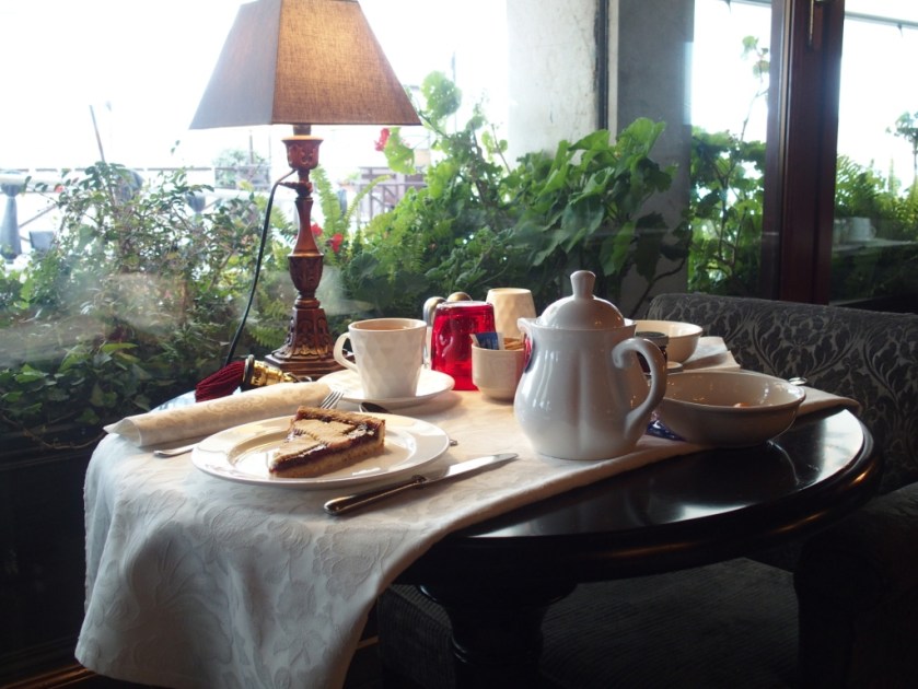 D’ailleurs, mon manteau était trempé, mes doigts gelés et j’avais soudain très envie d’une tasse d’English Breakfast brûlant, de fruits frais et d’une part de cette délicieuse crostata alla marmellata qui faisait mon régal du matin à la Calcina.