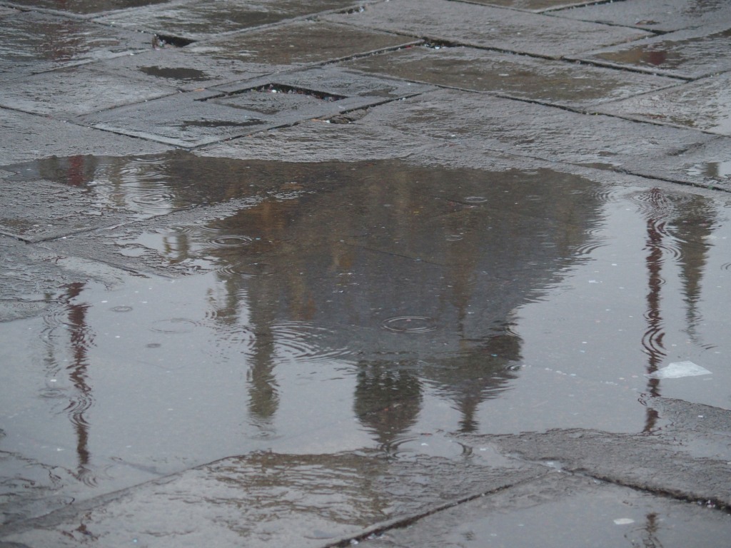 La pluie tombait toujours, mêlée maintenant à des cristaux de neige. Un balayeur traversait la place, petit point jaune citron dans le gris du matin. Seules les gouttes d’eau se faisaient entendre et de grandes flaques, comme autant de miroirs, s’étaient formées, reflétant la basilique et le ciel ; je pensais à Diane qui, avant mon départ, m’avais dit : « ce n’est pas grave s’il pleut car à Venise même les flaques d’eau sont belles !… ». Et elle avait raison ! Comme toujours.