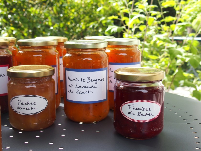 Je suis plutôt cigale que fourmi. Mettre de côté, penser à l’avenir, épargner, économiser sont des choses que je ne sais pas faire. J’ai d’ailleurs toujours pensé que compter ses sous et les planquer à la Caisse d’Epargne manquait sérieusement d’élégance. Au grippe-sou mesquin, j’ai toujours préféré le bohème flamboyant. Je ne mets rien de côté sauf, à bien y réfléchir, trois choses : des livres qui attendent leur heure de lecture, des jours de congé (au travail mon compte « épargne-temps » – quelle drôle d’appellation quand on y pense – est gonflé au maximum car le ras-le-bol extrême ou l’opportunité d’un voyage extraordinaire n’étant pas à exclure, je mets de côté de la liberté !) et enfin, des confitures … Depuis quelques années, j’en fais chaque été et éprouve un plaisir d’Harpagon à contempler mes dizaines de pots alignés sur les étagères du cellier ; la comparaison s’arrêtant là car je fais de la confiture avant tout pour les autres. Savoir que l’hiver venu, famille et amis pourront étaler sur la brioche du …