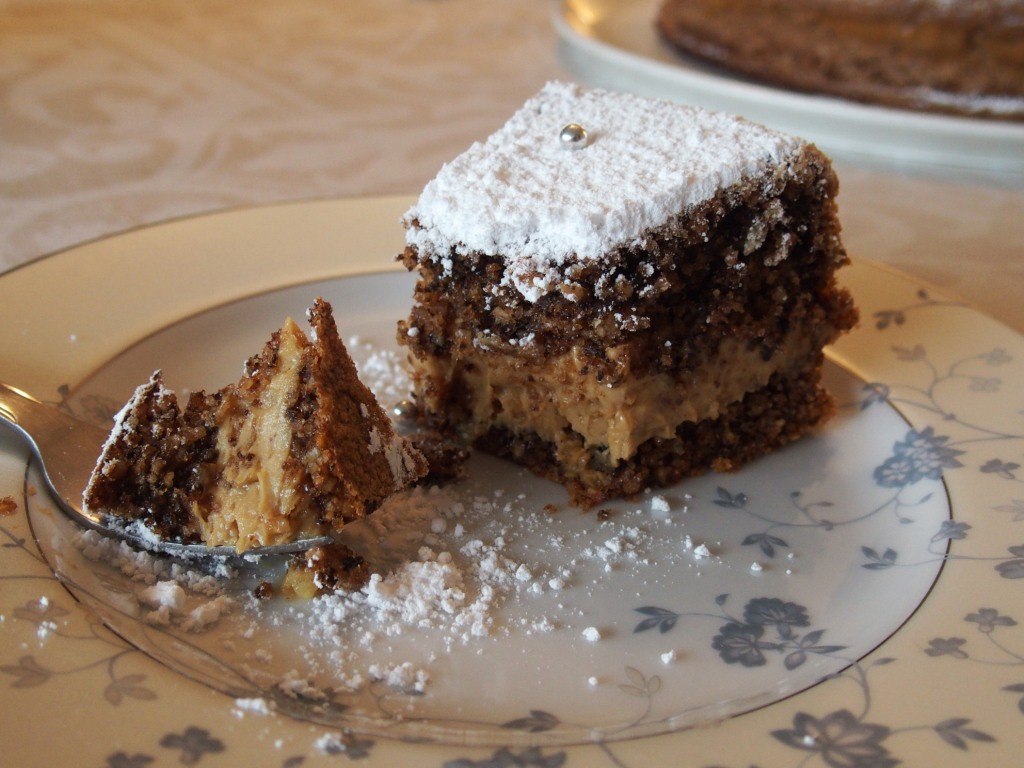 J’ai découvert cette recette il y a quelques années dans un article de Elle à table consacré à l’Italie. Biscuit aux noix fourré d’une crème de mascarpone aromatisée au café. Cela ne pouvait être que délicieux*.