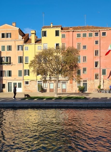 Je sortais néanmoins chaque matin assez tôt. Je voulais avoir le temps de perdre du temps. Cela commençait par ma promenade vers la boulangerie ; une grande boucle à travers les ruelles avec toujours un passage le long de la riva degli Schiavoni. J’aimais ce rendez-vous quotidien avec la lagune au petit matin. Toute seule, les mains dans les poches, libre, toute à ma contemplation des couleurs de l’eau et du ciel, de San Giorgio ocre-rose dans le soleil levant ou disparaissant presque dans la brume. Parfois, un promeneur solitaire faisait de même et nous échangions alors un sourire en guise de salut comme le feraient les membres de quelque société secrète. Nous savions que se lever tôt nous donne à voir une Venise qui s’ébroue, s’éveille, une Venise des vénitiens, une Venise pour initiés ou plutôt pour ses amoureux qui alors ne sont pas gênés par les touristes.