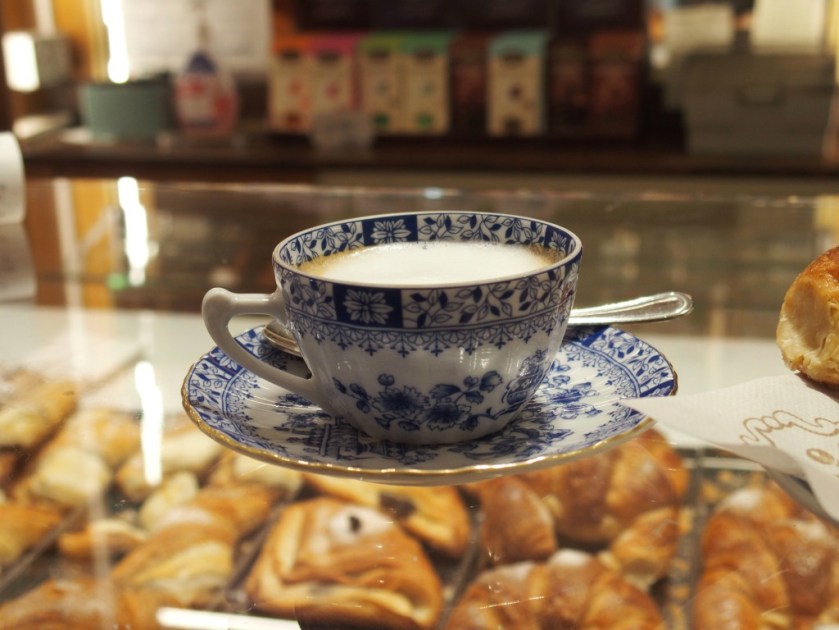 Chuintement des percolateurs, musique de la langue, effluves de café et de brioches, serveuses affairées, rangées de petits gâteaux, bruit des tasses que l’on pose sur le comptoir de marbre … Bien souvent je commandais un second café (et un second croissant !) tant j’aime ces lieux si vivants.