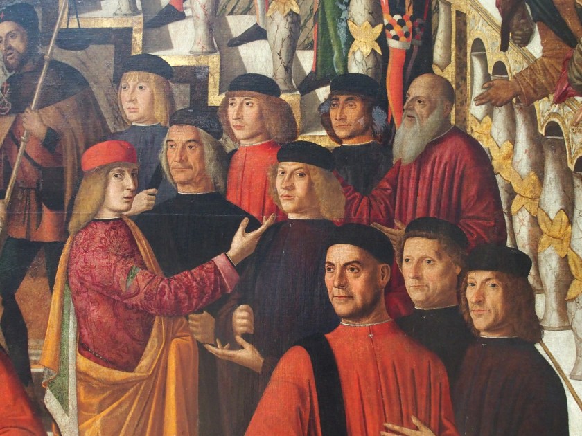 La peinture ancienne est énigmatique. On a beau tenter d’en percer les mystères, je pense que finalement, elle ne livre jamais tout. On peut passer des heures enfermé dans un musée, se planter devant une toile et la regarder jusqu’à épuisement, eh bien on en ressort souvent bredouille ou plutôt avec plein de questions. Et finalement ce n’est pas si mal. Les historiens de l’art nous éclairent, oui, et c’est tant mieux, mais seulement un peu. Car tout est question de regard, d’interprétation, de supputation. Replacer les œuvres dans leur contexte, s’intéresser à l’histoire, à la géographie, cela va de pair pour comprendre Carpaccio, Bellini, Brueghel ou Memling. N’empêche que, sauf à se télé transporter dans le passé et atterrir dans leur atelier, personne ne saura jamais vraiment … Et que dire des visages de ces peintures et des détails qui sont parfois autant de trésors pour qui veut vraiment regarder. Les détails, fabuleux indices, clins d’œil, témoignages de la vie d’alors, messages envoyés par le peintre à travers les siècles … ils me fascinent. …