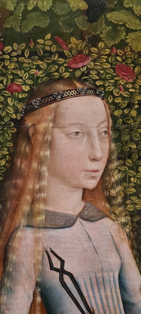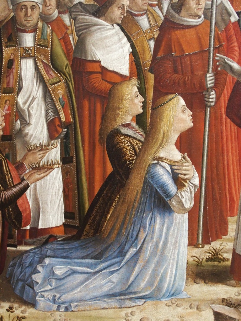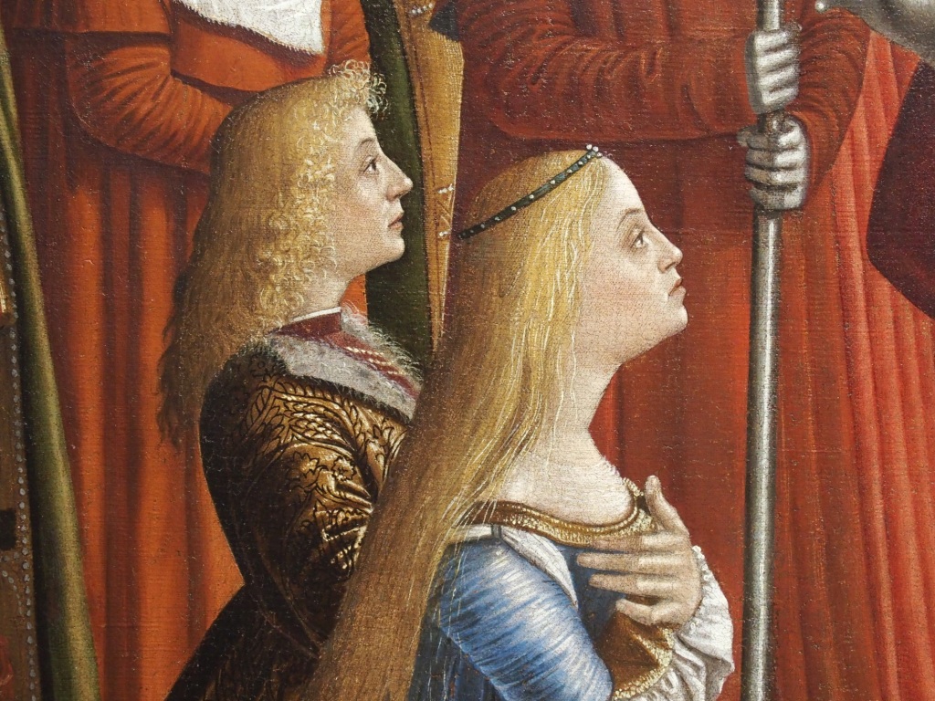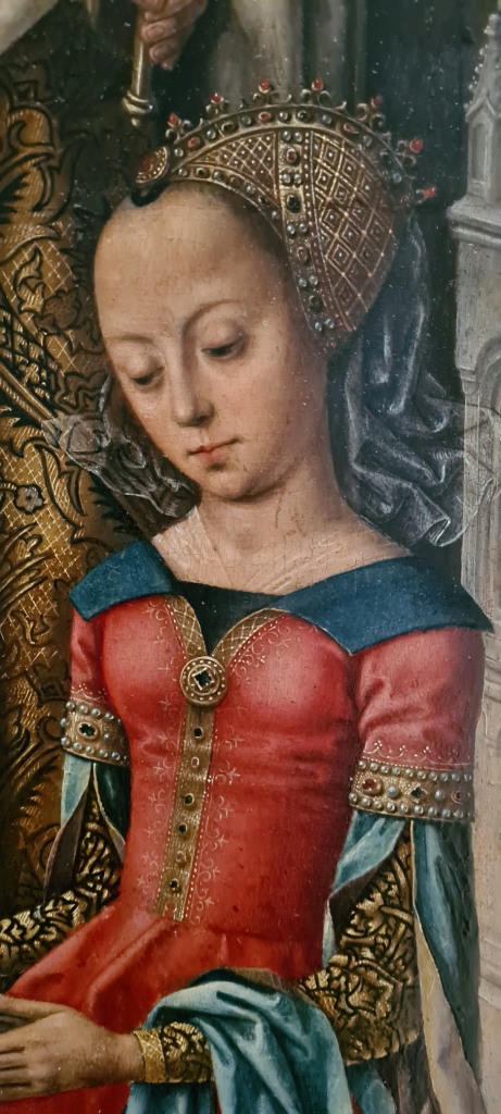 Sainte Anne trinitaire entourée de Saint Jean-Baptiste, Saint Louis, Sainte Catherine et Sainte Barbe (détails) – Musée Oldmasters Museum, Bruxelles