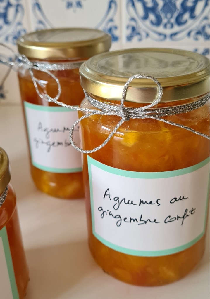 Ma confiture du Nouvel An, comme je l’appelle, est en fait une confiture d’agrumes au gingembre confit dont l’acidité et la fraicheur évoquent à la perfection un janvier rêvé de froid piquant, de bleu et blanc polaires et de cristaux glacés. Une confiture de saison acidulée mais chaleureuse, parfaite sur du pain grillé et sublime sur du fromage blanc de campagne.